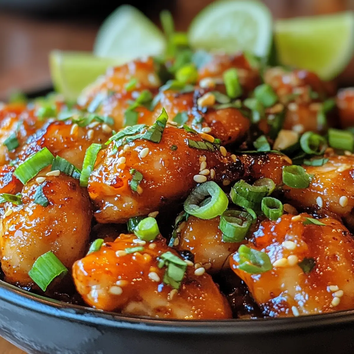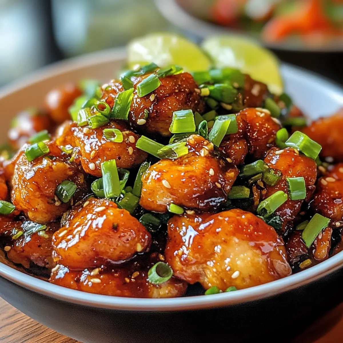 Perfekte Kombination: Die saftigen Hähnchenstücke und die klebrige Sauce sind ein wahres Fest für die Sinne, einfach unwiderstehlich!