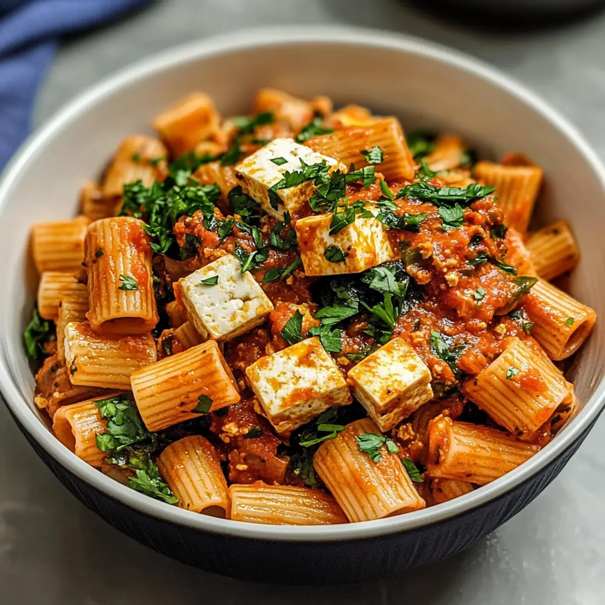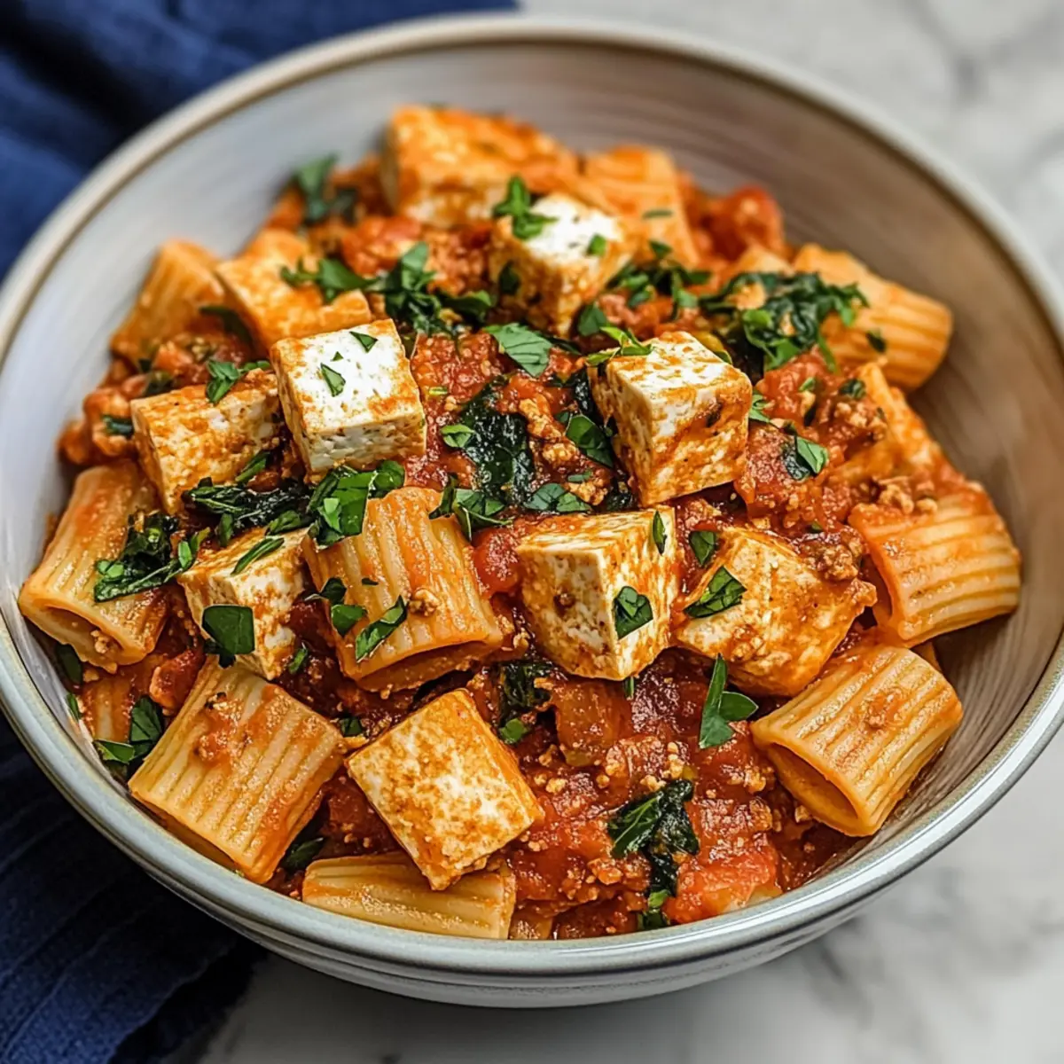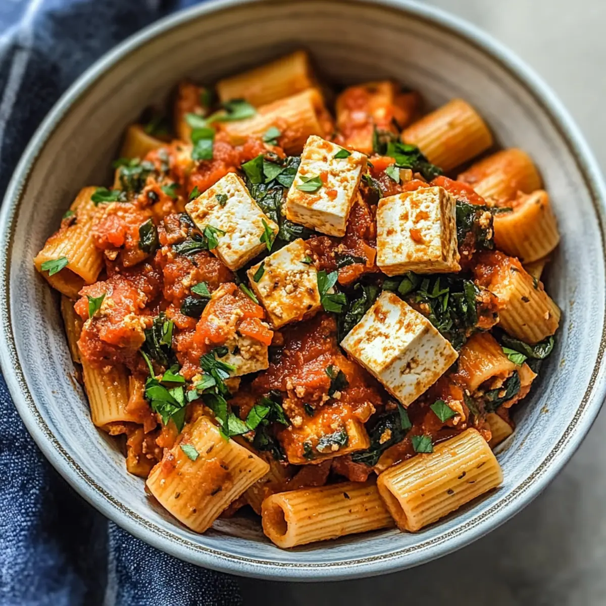 Freue dich auf ein schnelles, köstliches und gesundes Veganes Tofu Tomaten Pasta Erlebnis!