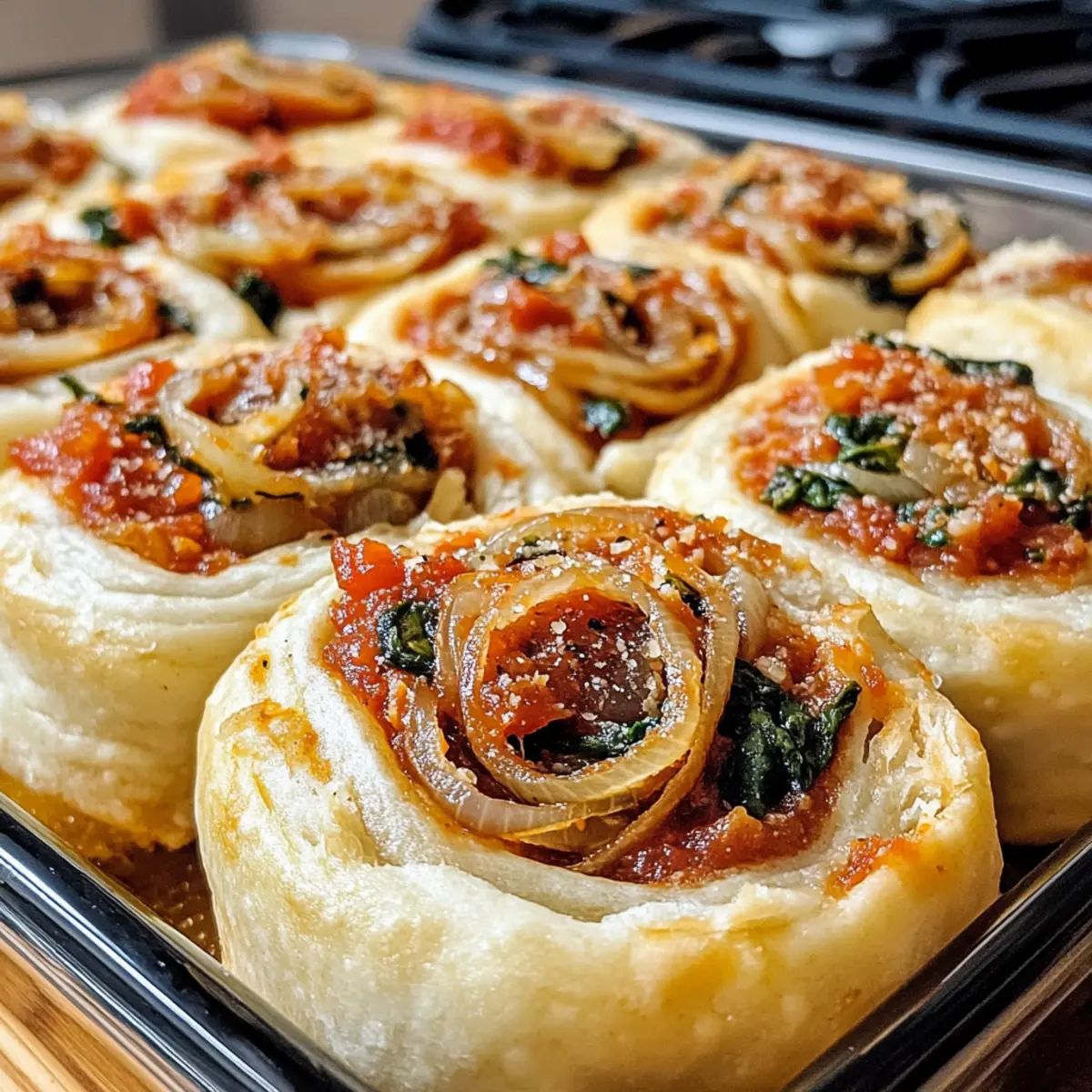 Diese vegane karamellisierte Zwiebel- und Spinat-Pizza-Rollen sind eine willkommene Bereicherung in der pflanzenbasierten Küche!