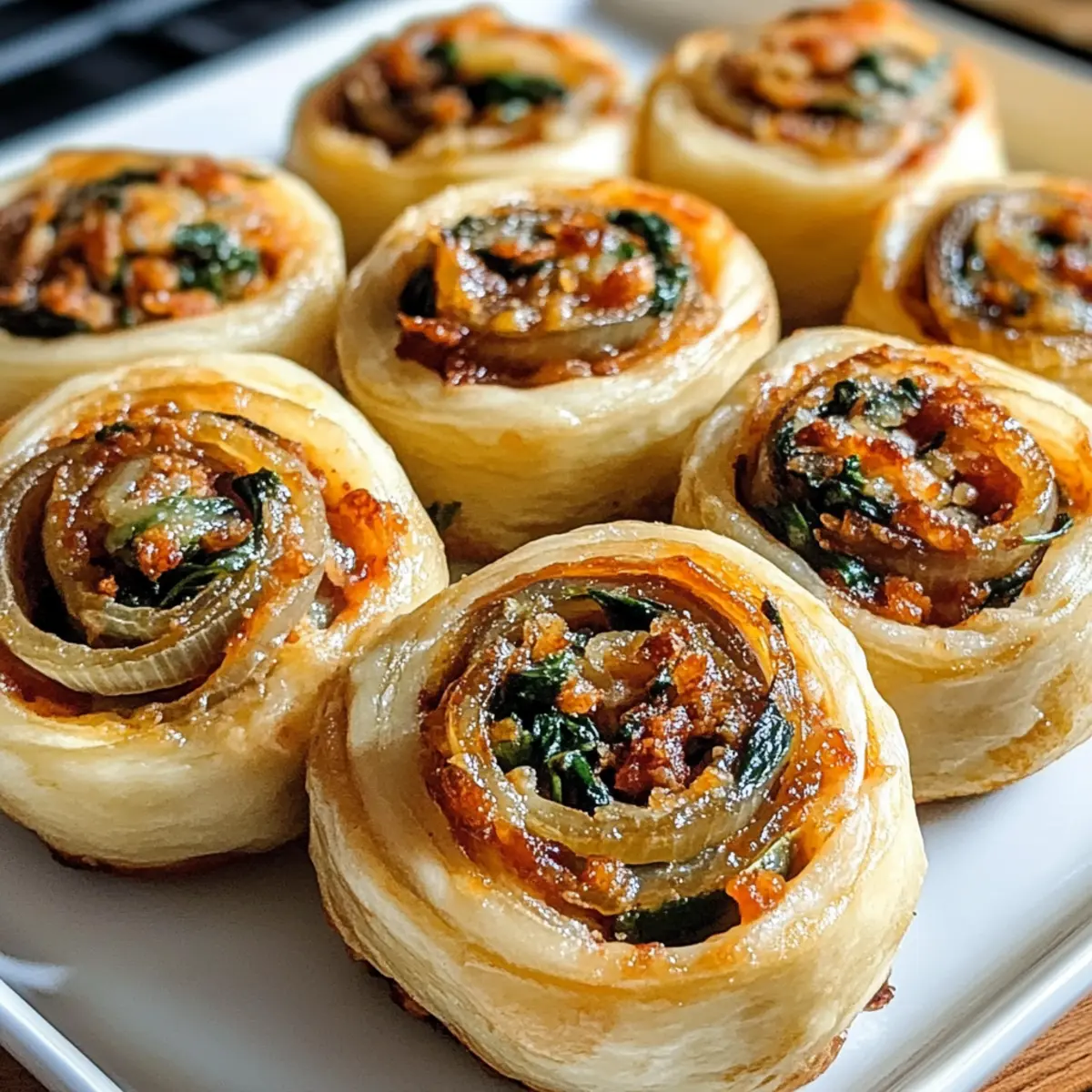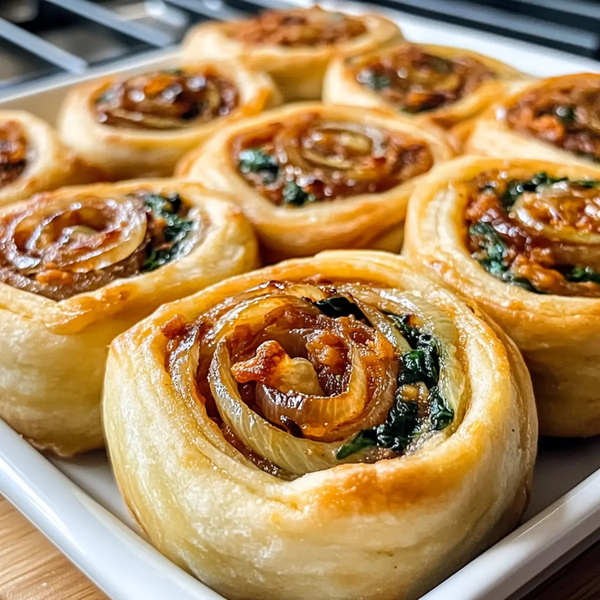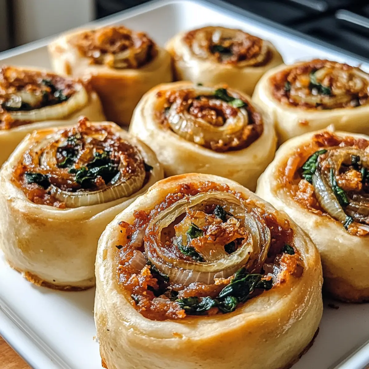 Vegane karamellisierte Zwiebel- und Spinat-Pizzarollen