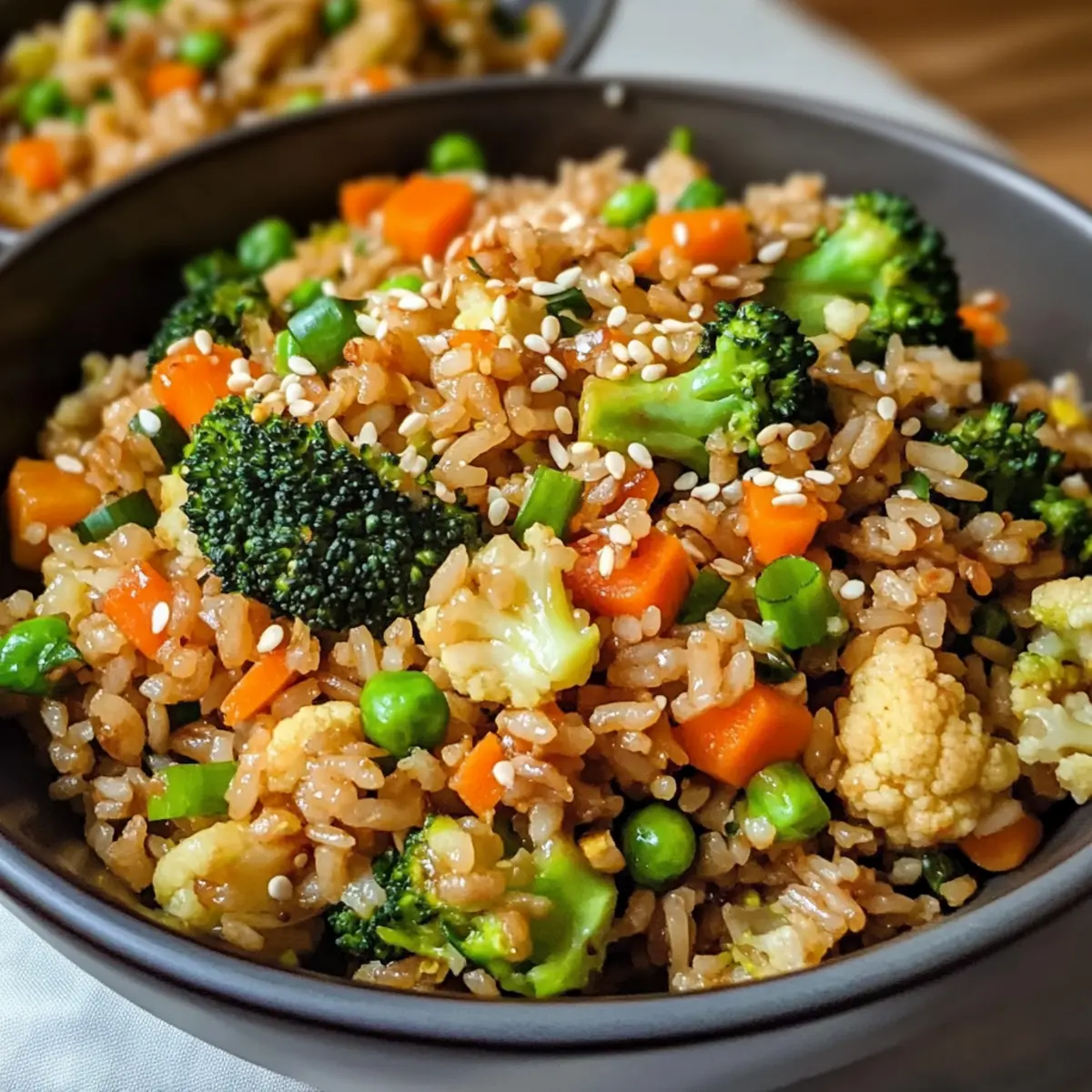- Anrichten: Garniere deinen veganen gebratenen Reis mit gerösteten Sesamkörnern oder frischen Frühlingszwiebeln, um das Gericht visuell ansprechender zu machen und zusätzlichen Geschmack zu verleihen.