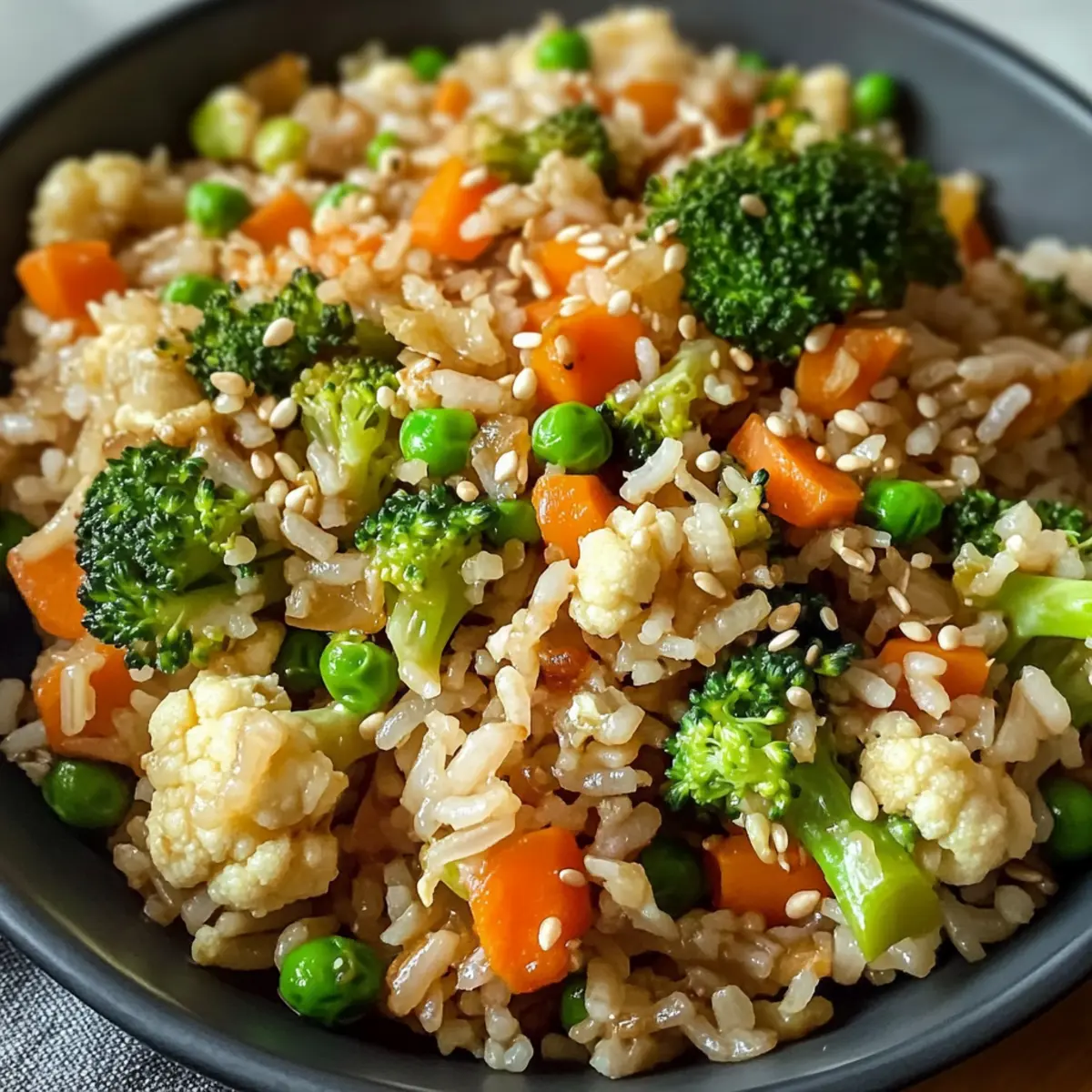 In derselben Pfanne erhitzt du nun etwas Öl und fügst das fein gehackte Gemüse hinzu: Brokkoli, Blumenkohl und Karotten. Sauté die Mischung für etwa 5-7 Minuten, bis das Gemüse zart, aber noch knackig ist. Die leuchtenden Farben des Gemüses werden dich anlächeln und dafür sorgen, dass dein veganer gebratener Reis noch appetitlicher aussieht.