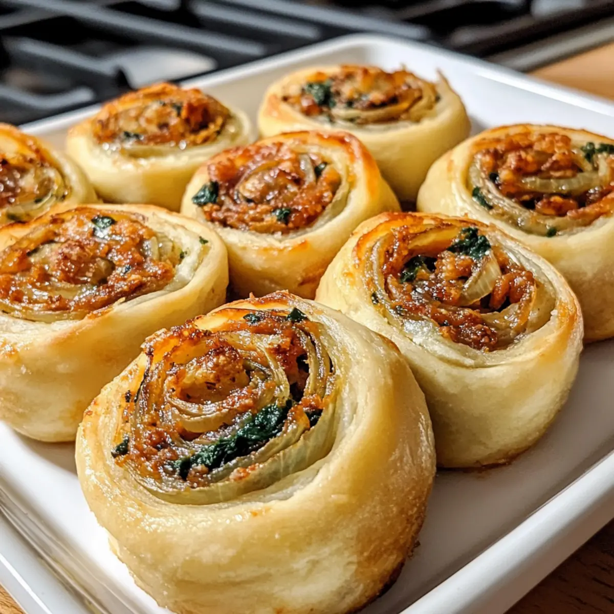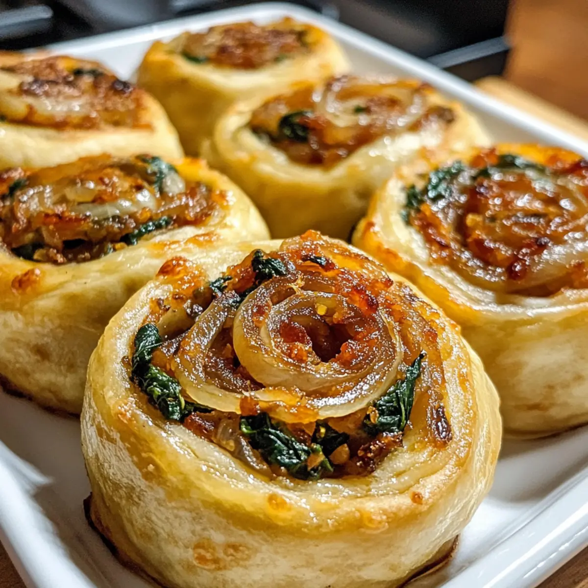 Perfekte Vorbereitung für Veganisierte Karamellisierte Zwiebel & Spinat Pizza Rollen