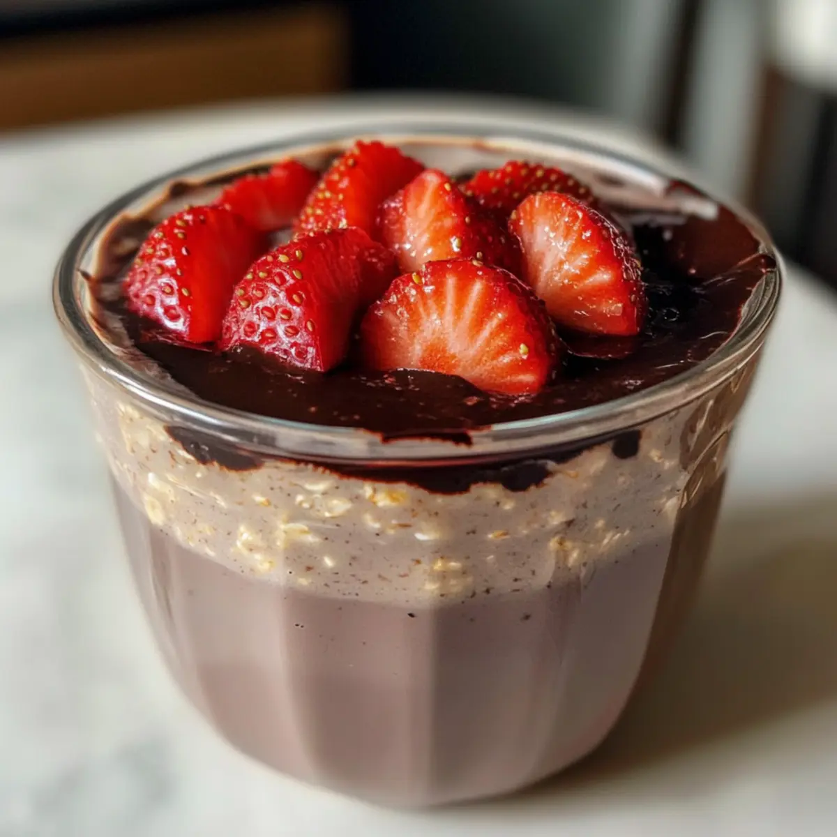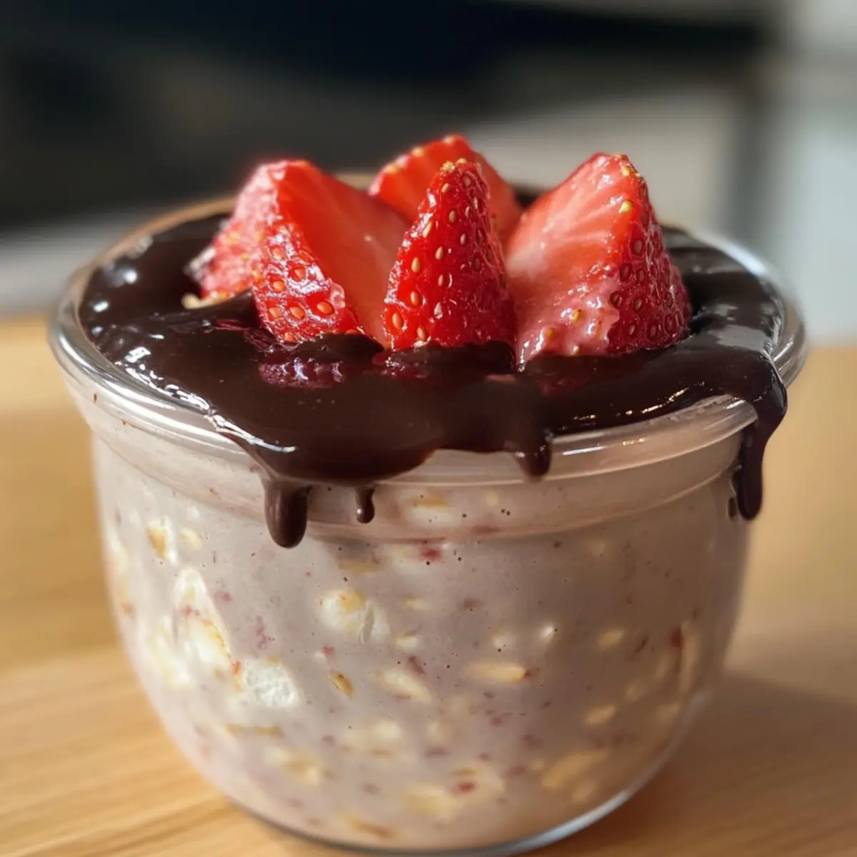 Vermischte Erdbeerhafer mit Schokoladenschale