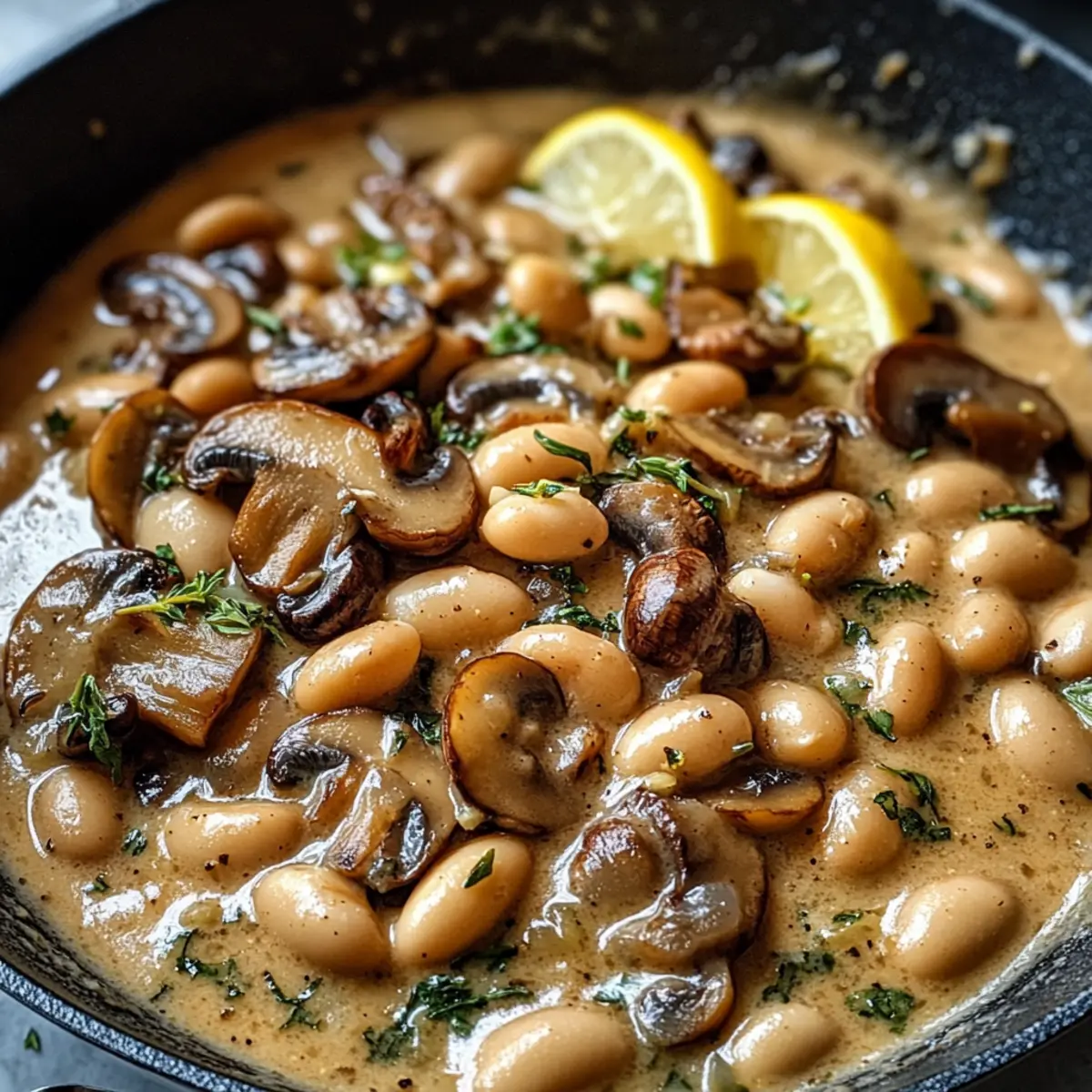 Köstlicher Geschmack: Die Kombination aus frischen Pilzen und cremigen Bohnen sorgt für ein verstärktes Geschmackserlebnis, das die Sinne verführt.